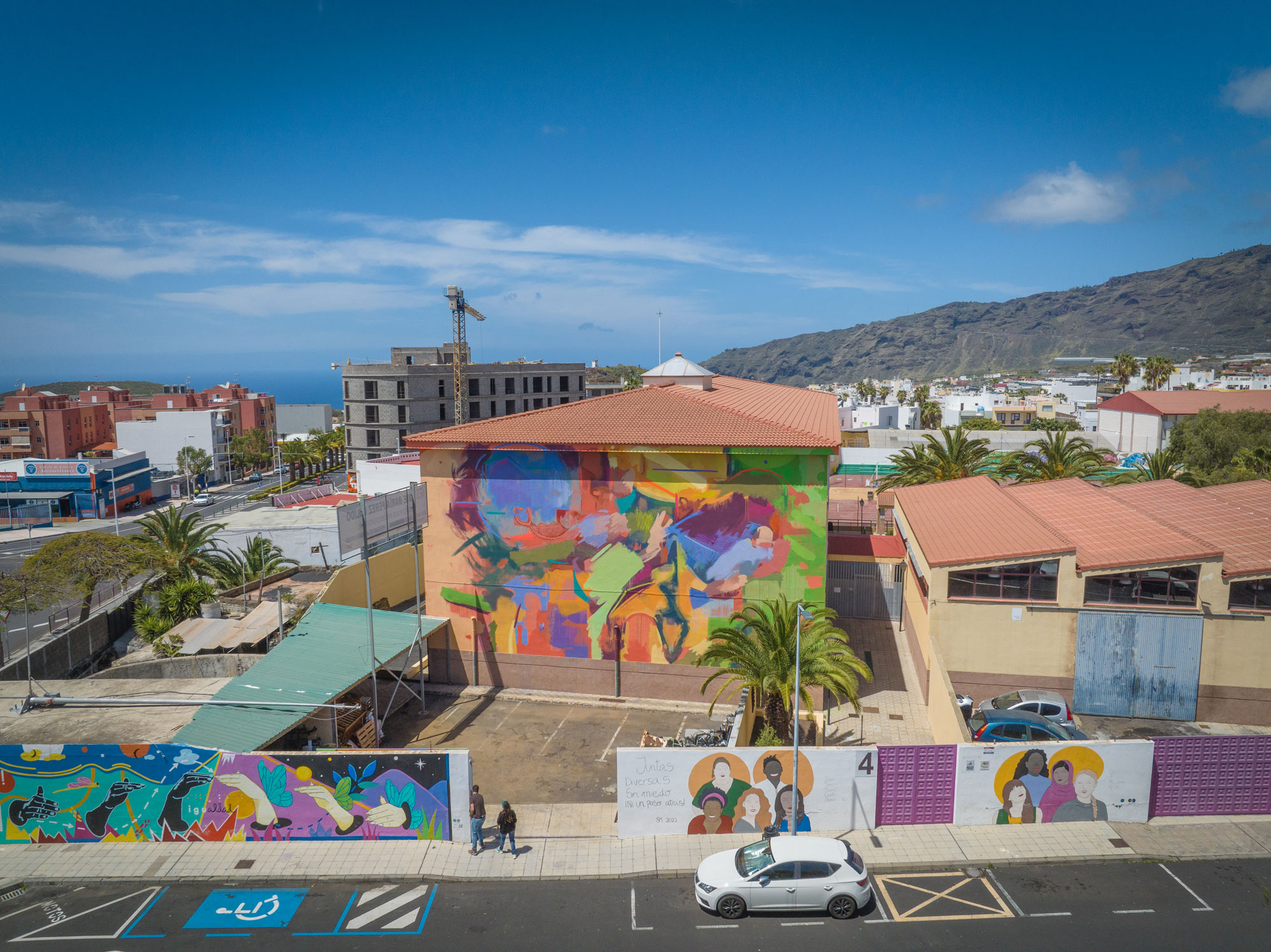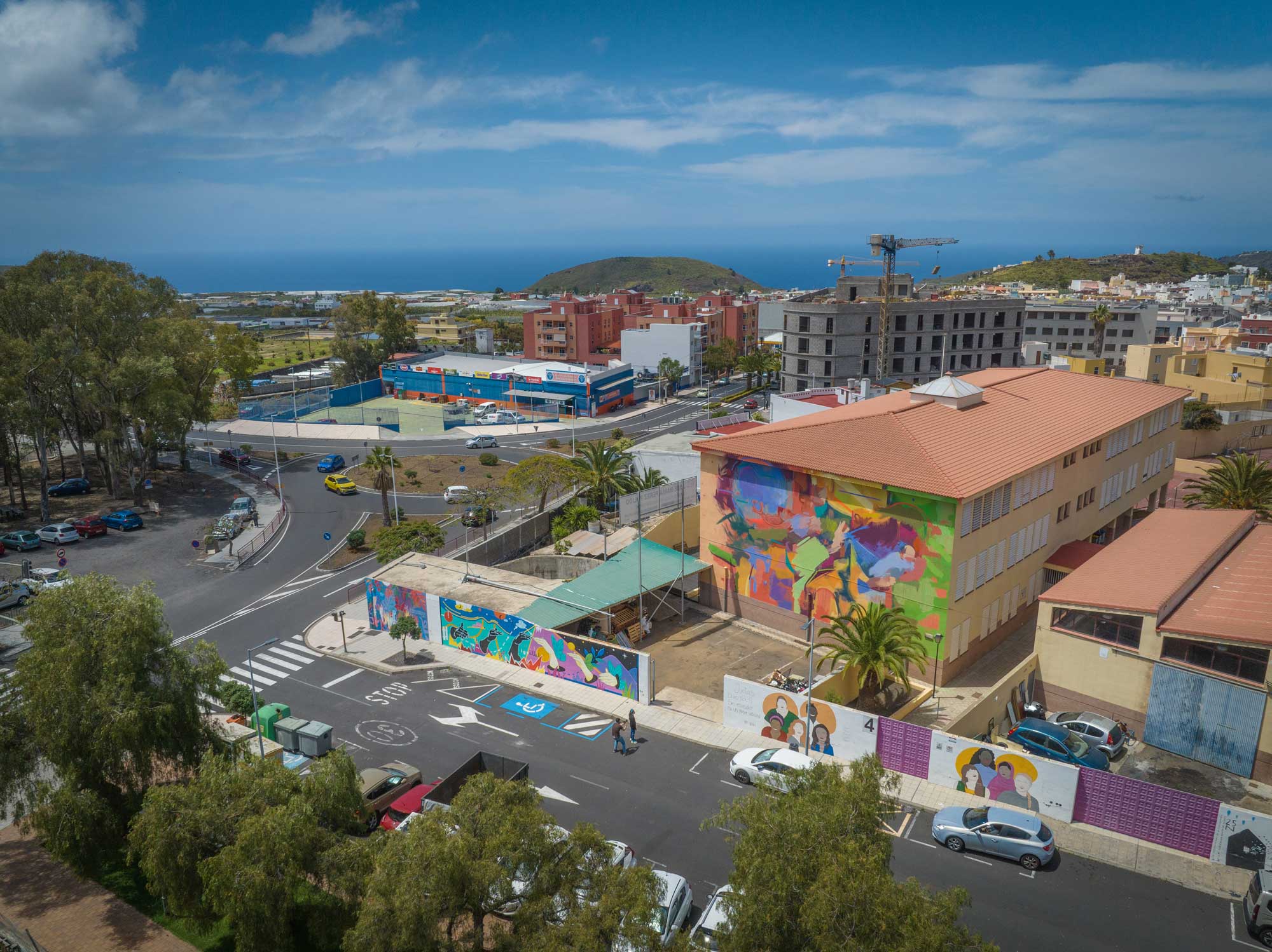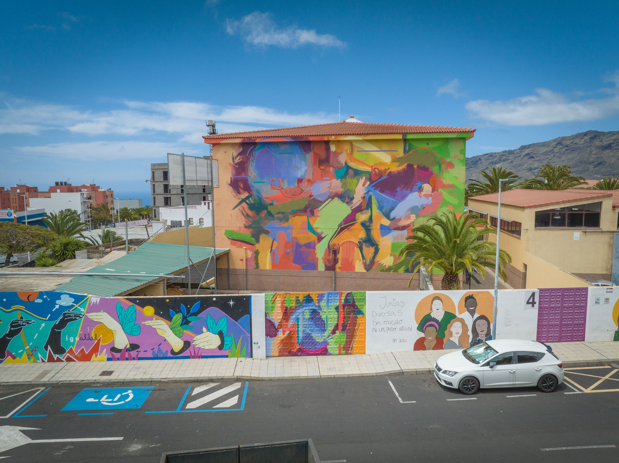 Título: Primavera Autor: Paula Calavera (Ceuta, 1989) Técnica: Pintura acrílica sobre muro Superficie: 160 m² Ejecución: abril, 2025 Ubicación: IES José María Pérez Pulido (hacia Calle La Sabina)