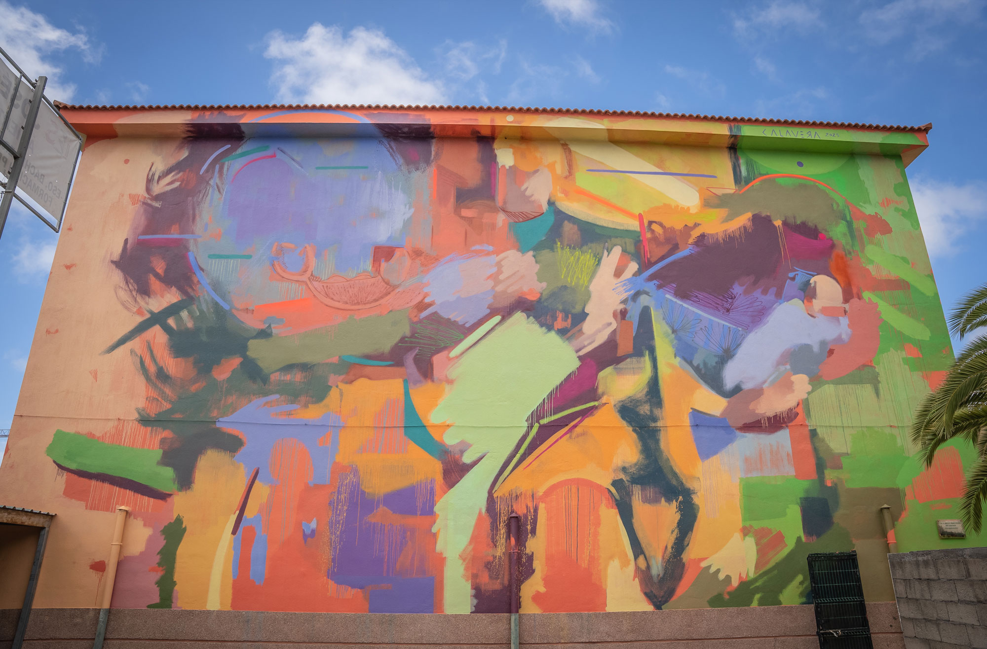 Este mural, de más de 160 metros cuadrados de superficie, surge de un proceso de reflexión sobre la abstracción, no de forma pura, en la que ha querido trasladar lo que hace cuando pinta en la calle: un freestyle, un jazz pictórico. Según Paula Calavera “una pieza salvaje y disfrutona, ingenua, divertida, alegre: el CEMFAC me ha dado la oportunidad de un cambio de registro y camino”. Siempre busca sugerir formas concretas de la que parte o que, simplemente, van apareciendo entre las masas y el ruido; recuerda sus primeros pasos cuando llenaba libretas de formas aleatorias e inconscientes que iban completando la superficie. Para ello utiliza la paleta cromática que el propio entorno le ofrece, reorganizándolos y trasladándolos al muro, a esta “Primavera” de color “cuando ya los días son más largos y la gente cambia su actitud vital”. A nivel cromático y compositivo la obra se divide en tres franjas principales que se apoyan en unos colores primordiales: rojo, azul y verde; la figuración de dos cangrejos, dos figuras que arrullan bebés y 3 lunas se entrevén en la escena. Aun así el espectador tiene que disfrutar y entretenerse buscando y encontrando formas concretas, imaginando ese ruido de colores y direcciones, lo que el inconsciente nos sugiere, a modo de un test de Rorschach, pero a color.